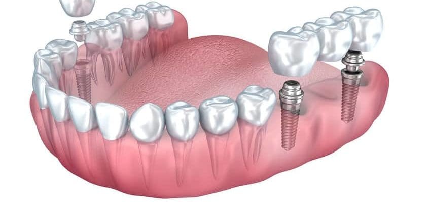Dental implants are artificial roots and teeth (usual titanium) that are surgically placed into the upper or lower jaw bone by a dentist or Periodontist – a specialist of the gums and supporting bone.